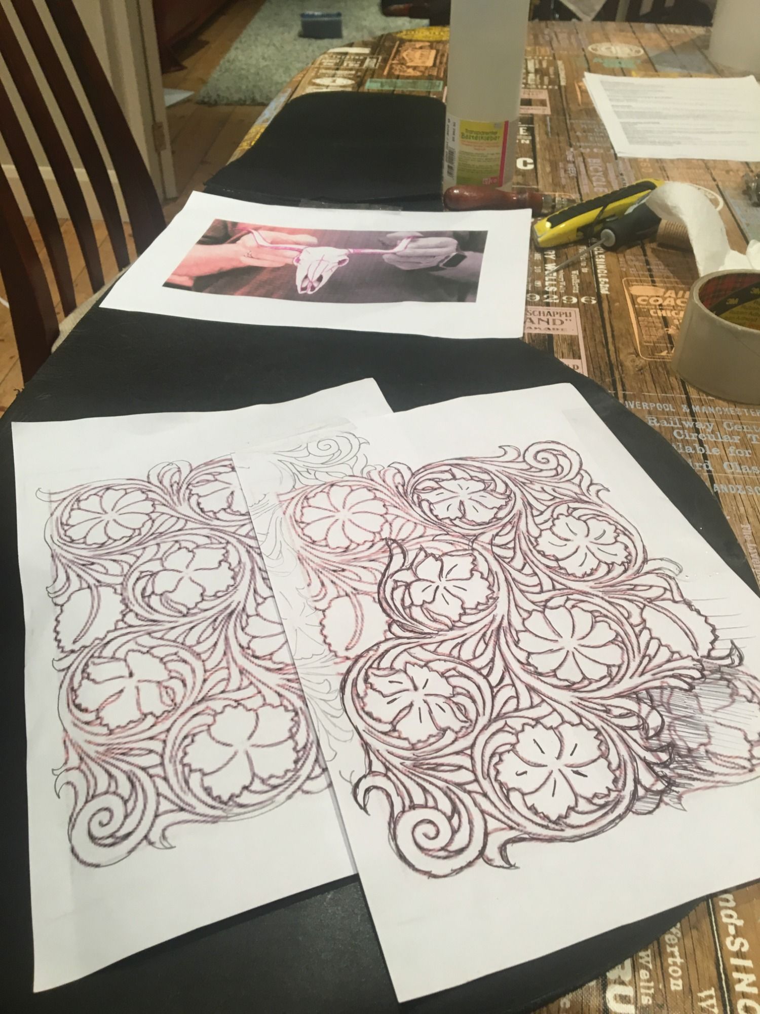 Costume accessories, guitar and camera straps, bags, pouches all tooled, sewn and carved by hand.